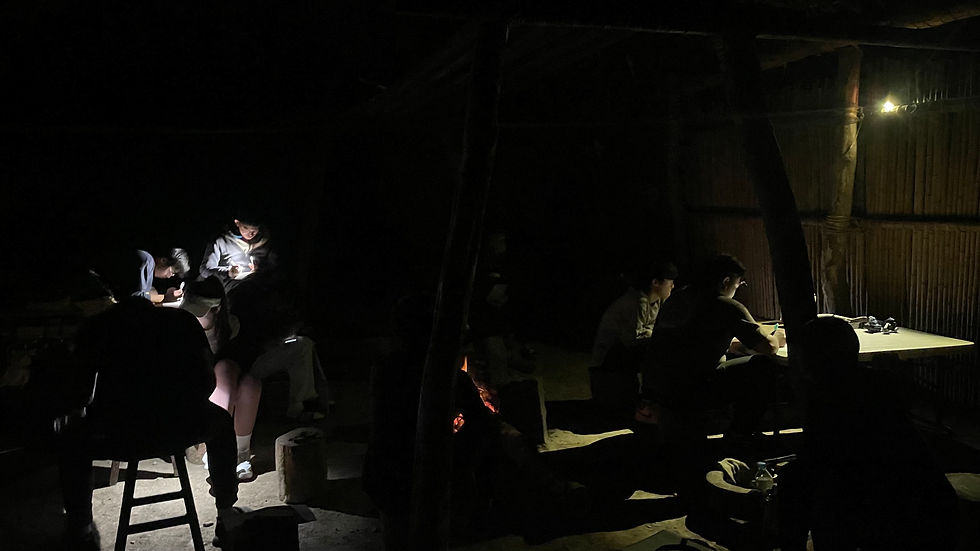 這場走讀不只是參訪,而是一次將目光從土地帶回內心的旅程。我們配合學校需求,將人權議題編織進鄒族的家園,沿著溪流上行,在命名土地與就地取材的過程中,用身體呼吸山林的節奏。入夜後,我們聚集在溫暖的家屋,聆聽三位不同世代鄒人的生命敘事,在世界咖啡館的對話中激盪思考,並透過自由書寫,將這份「土地裡的人權」轉化為對自我的提問。我們深信,唯有實際走過那片山水、聽見那些故事,人權才不再是課本上的名詞,而是與生命共振的溫度。